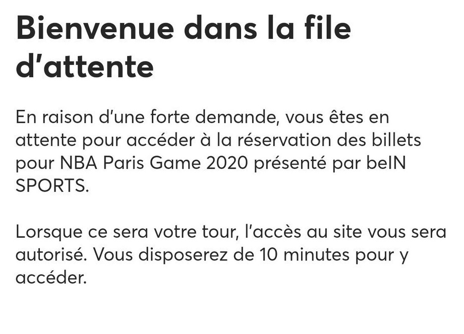 Mercredi, la pré-vente des billets pour le NBA Paris Game 2020 a tourné à l’émeute. On pensait que seuls des concerts pouvaient engendrer un tel engouement en France, mais dès 11h00, à l’ouverture de la billetterie, nous étions déjà 50 000e dans la liste d’attente pour ce modeste Bucks – Hornets. Et ce alors qu’on pensait être parmi les premiers à nous connecter, et que le système de pré-inscription permettait justement d’éviter ce genre d’attente.