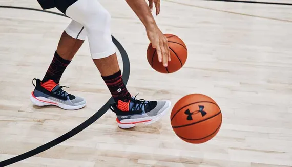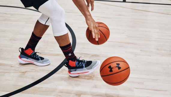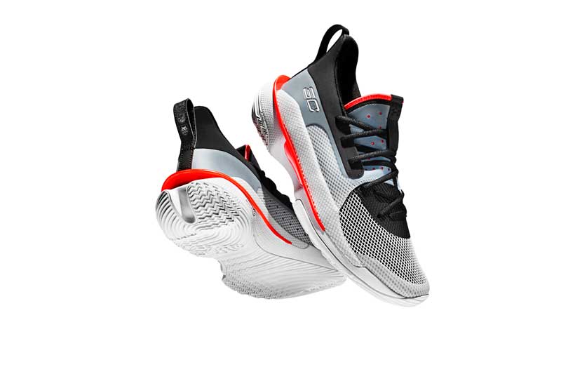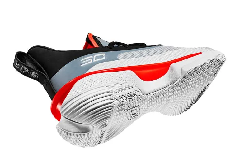 « La semelle extérieure Curry 7 est dotée d’un système d’adhérence aux motifs crantés avec des hauteurs variables utilisant trois couches de traction radiale différentes », explique le communiqué. « Ce système crée des niveaux d’adhérence supplémentaire en fonction de la force appliquée, tout en fléchissant simultanément avec chaque mouvement de l’athlète. »