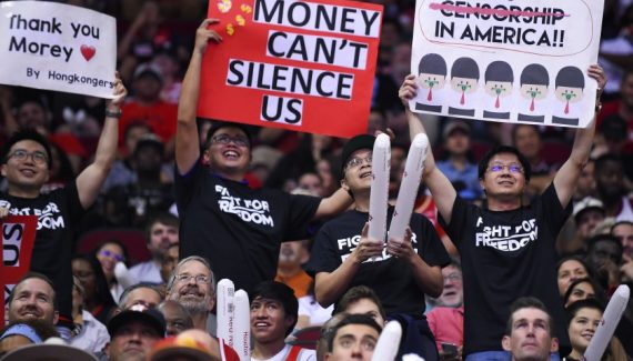 “Liberté”, “Soutien à Hong Kong”, “Merci à Morey, signé les Hong-Kongais”… Cette nuit, pour la première des Rockets à domicile, la politique s’est invitée dans les travées du Toyota Center. Une trentaine de fans étaient venus afficher leur position en faveur des manifestants de Hong Kong.