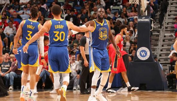 En l’absence de Derrick Favors dans la raquette des Pelicans, Steve Kerr opte pour un cinq “very small ball”, avec Draymond Green en pivot, aux côtés de Glenn Robinson III et du trio d’arrières Stephen Curry – D’Angelo Russell – Jordan Poole.