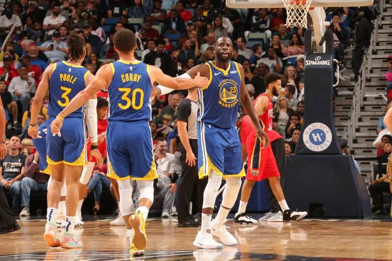 En l'absence de Derrick Favors dans la raquette des Pelicans, Steve Kerr opte pour un cinq “very small ball”, avec Draymond Green en pivot, aux côtés de Glenn Robinson III et du trio d'arrières Stephen Curry – D'Angelo Russell – Jordan Poole.