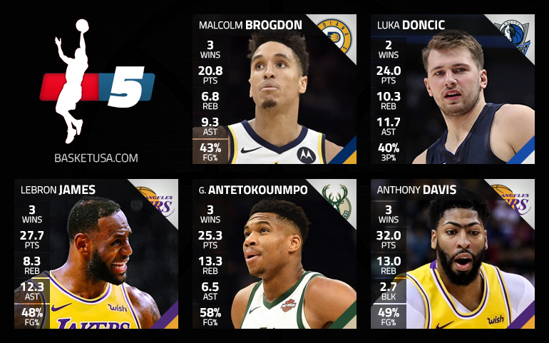 À l’aile, ce fut compliqué de choisir entre les suspects habituels, LeBron James, Giannis Antetokounmpo et Kawhi Leonard méritant sans doute tous d’intégrer le cinq de la semaine. Mais il faut bien faire des choix et on laisse finalement le Clipper de côté pour cette fois…