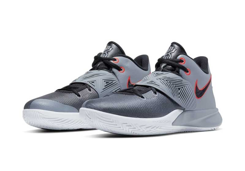 La ligne générale rappelle largement celle de la Flytrap 2, avec exactement la même forme au niveau des lacets, la même semelle et le même amorti Zoom Air. Pour actualiser tout ça, on a repris des éléments du look de la Kyrie 6. Une sangle sur le coup de pied, du cuir autour du talon, et le tour est joué. Même si les technologies et les finitions sont plus poussées sur la Kyrie 6, on pourrait presque les confondre.