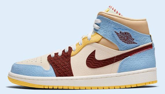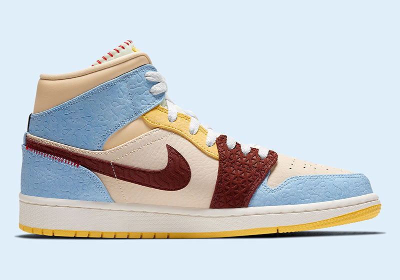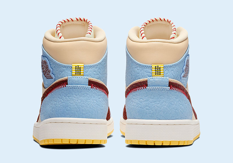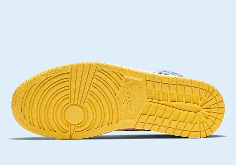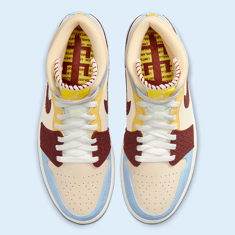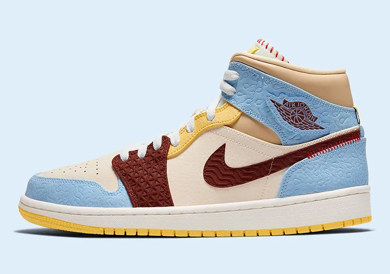 Sur la Air Jordan 1, cela donne du bleu ciel, du jaune, du marron et une base crème. C’est pétillant et original.