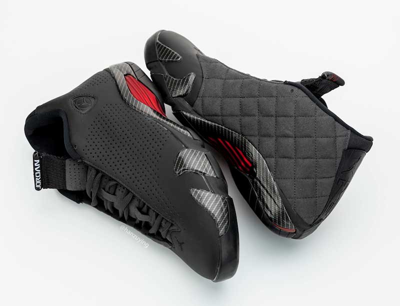 Intérieur matelassé, cuir perforé, inserts en carbone. Non, ceci n’est pas une publicité pour une voiture. Il s’agit de la prochaine Air Jordan 14 SE.