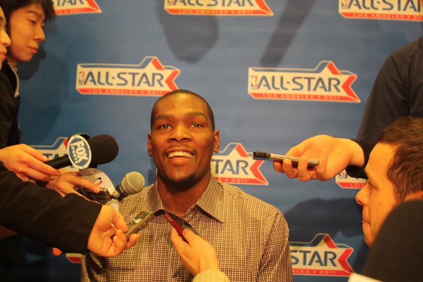 Vendredi midi dans un salon de l’hôtel officiel du All Star Week-End adjacent au Staples Center, l’ailier du Thunder fait moins recette auprès de nos confrères. Et c’est tant mieux. Avant que les suiveurs ne rejoignent la conversation, Basket USA a pu discuter dans une très relative intimité avec le meilleur scoreur de la ligue.