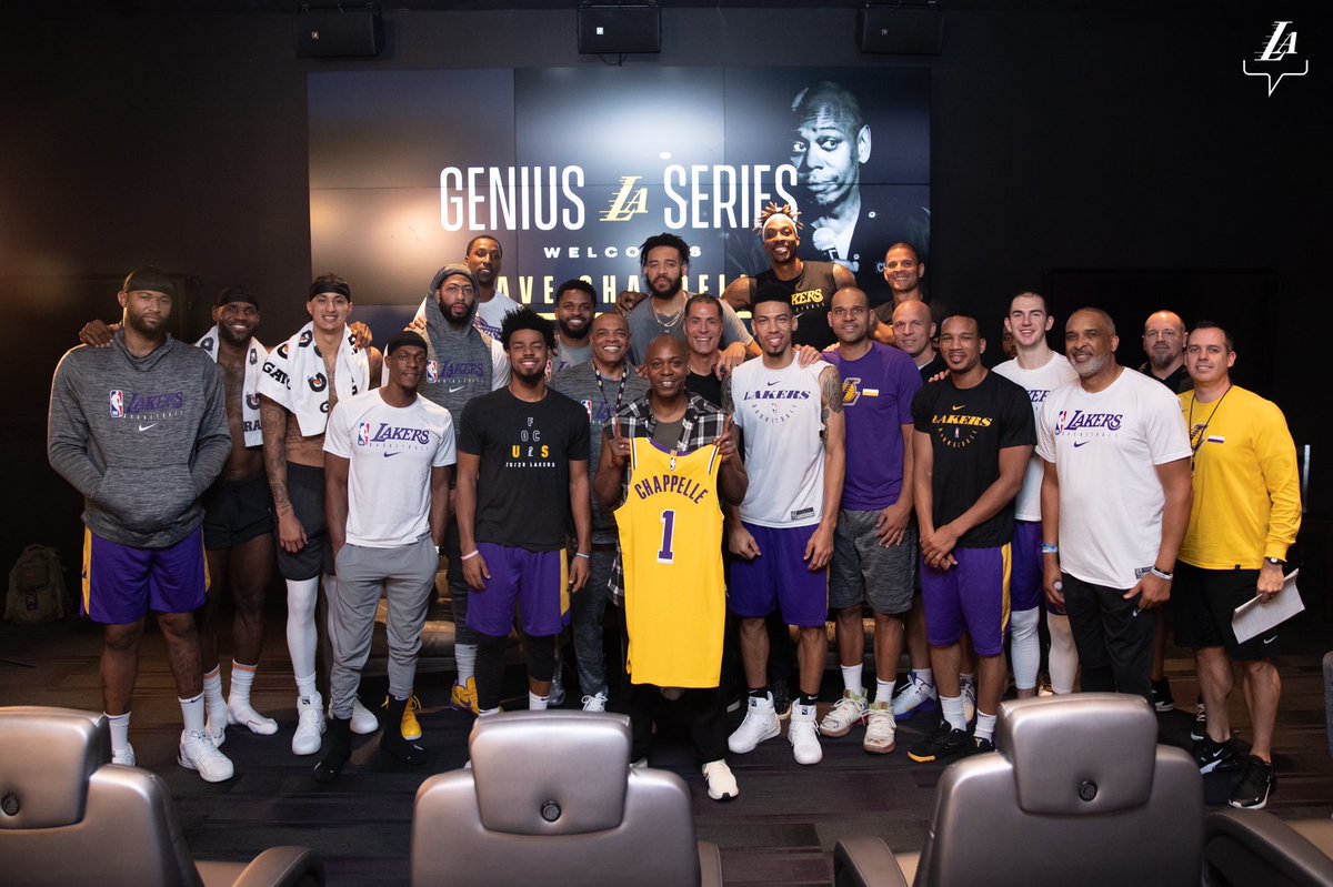 Hier, c’est dans le cadre des interventions baptisées « Genius Talks » mis en place par le GM Rob Pelinka que l’humoriste Dave Chappelle a rendu visite aux coéquipiers de LeBron James, succédant ainsi au magicien David Blaine, premier intervenant du genre de la saison. « C’est notre nouveau free agent » a plaisanté un porte-parole du club lorsque le comédien est entré dans le centre d’entraînement de la franchise californienne.