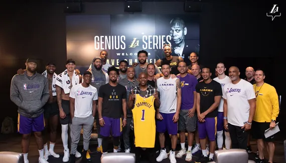 Hier, c'est dans le cadre des interventions baptisées « Genius Talks » mis en place par le GM Rob Pelinka que l'humoriste Dave Chappelle a rendu visite aux coéquipiers de LeBron James, succédant ainsi au magicien David Blaine, premier intervenant du genre de la saison. « C'est notre nouveau free agent » a plaisanté un porte-parole du club lorsque le comédien est entré dans le centre d'entraînement de la franchise californienne.