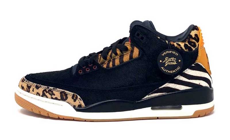 Toujours plus loin, toujours plus original. Et toujours plus déroutant pour les adeptes des coloris originaux de la Air Jordan 3. Au mois de décembre, la chaussure devrait être disponible en deux versions dans un “Animal Pack.”