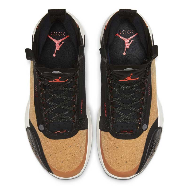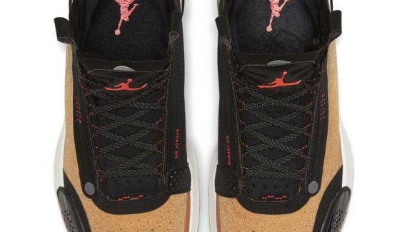 Aperçue pour la première fois il y a plus de deux mois, le version jaune et noir de la Air Jordan 34 est en approche. Jaune, ou plutôt liège. Difficile à dire, mais c’est original.