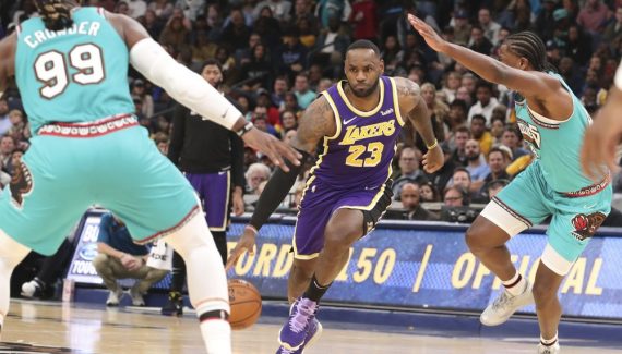 Il reste 1.3 seconde à jouer. Balle aux Grizzlies avec Kyle Anderson à la remise en jeu dans son camp. Il vise Jaren Jackson Jr qui glisse au moment de recevoir la balle. A-t-il été poussé ? Les arbitres ne bronchent pas, et les Lakers s’imposent d’un tout petit point à Memphis.