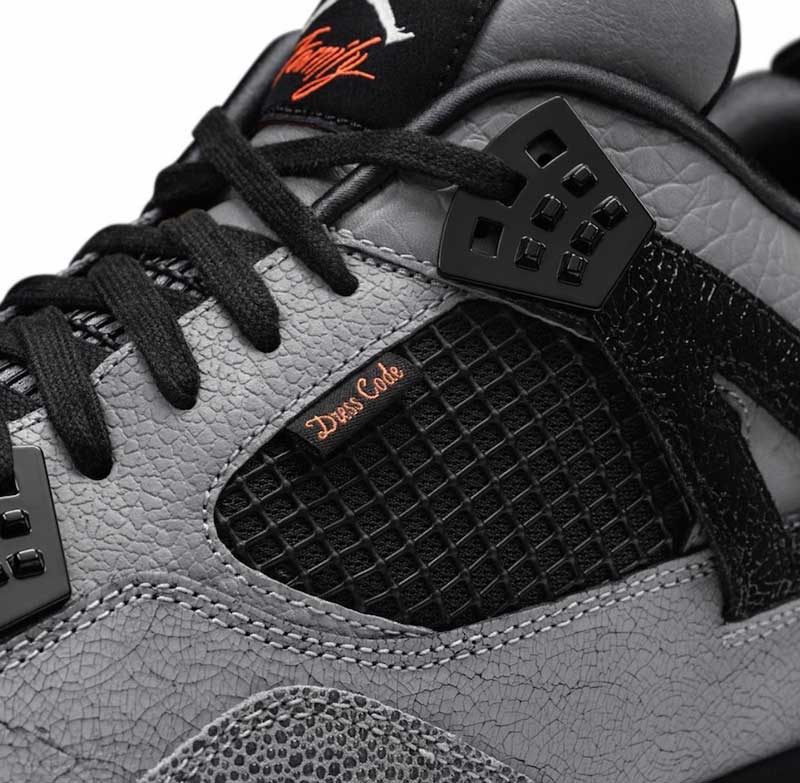 C’est un coloris inédit, mais il n’arrivera pas jusqu’au grand public. Baptisée “Dress Code”, cette Air Jordan 4 grise est destinée uniquement aux joueurs sous contrat avec Jordan Brand. Ils sont 29. Il y a donc 29 paires.