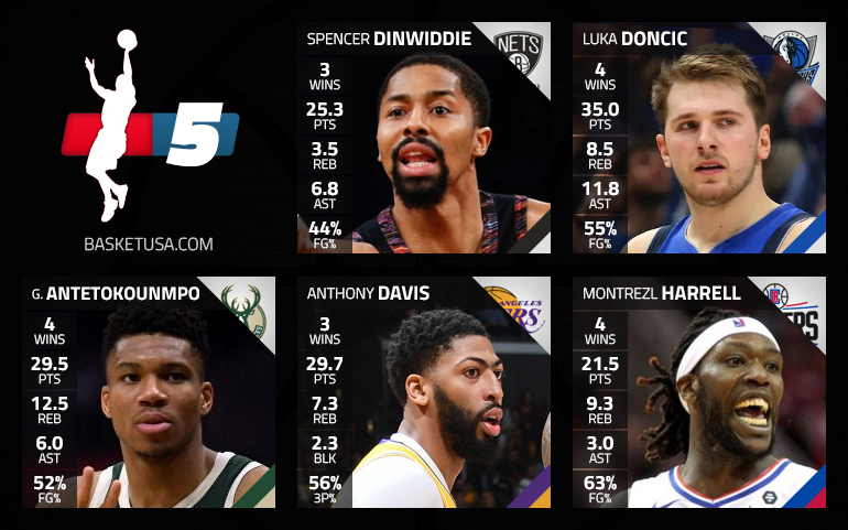 Avec quatre victoires en quatre matchs, des records de précocité et des “money time” impressionnants de gestion, Luka Doncic redonne le sourire à Dallas et s’offre une place de choix dans le cinq majeur de la semaine.