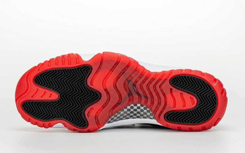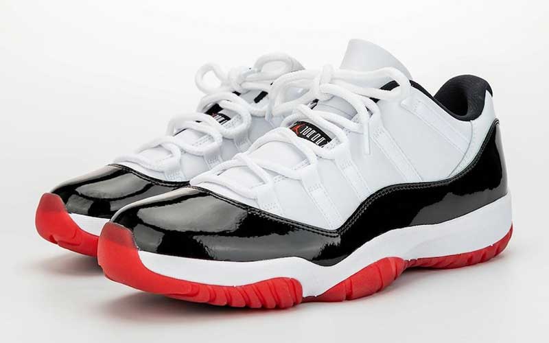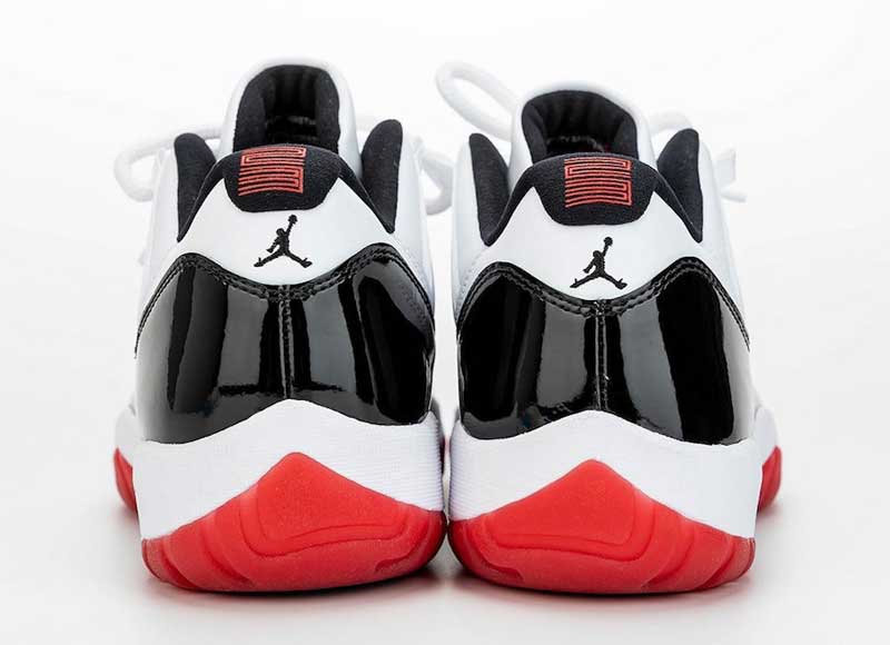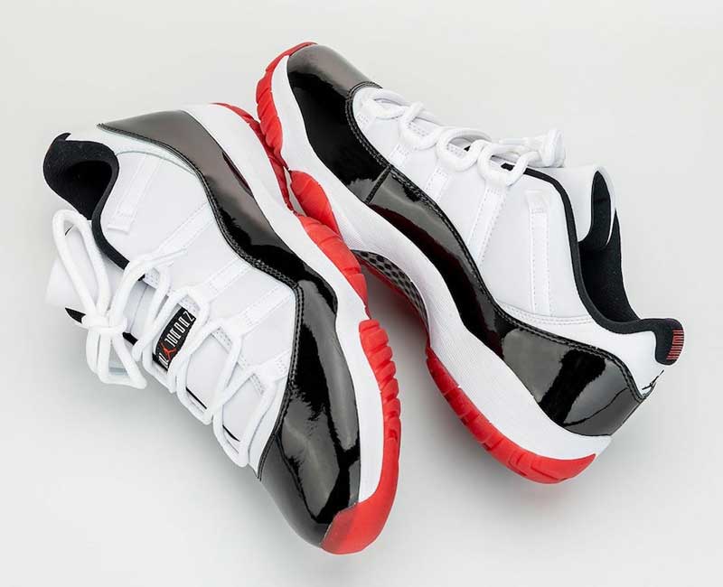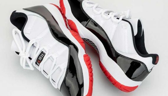 Un nouveau coloris, mais des inspirations anciennes. Avec sa base blanche et son empiècement en cuir verni noir, la chaussure rappelle clairement la teinte “Concord”, première version de la Air Jordan 11. Mais sous le pied, on retrouve le rouge de la “Bred” que portait Michael Jordan en playoffs. La différence, c’est que le cuir semble remplacer le mesh sur la partie blanche.