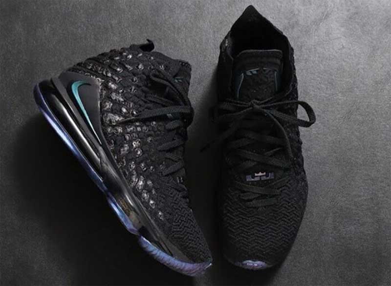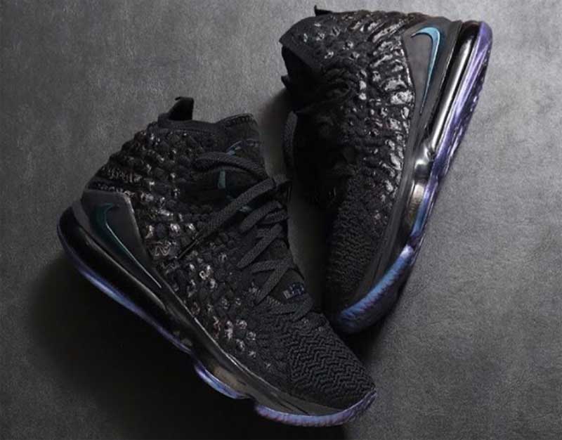 Toujours trop voyant pour vous ? Alors attendez le 13 décembre, pour la LeBron 17 “Currency”, qui mise sur un noir quasi-complet. Une semelle et un swoosh légèrement violets sont les seules touches de fantaisie.