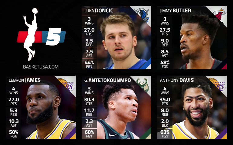 En optant finalement pour les deux premiers, le Slovène dominant (malgré une défaite à domicile face aux Kings) en seulement 30 minutes de moyenne, alors que Jimmy Butler a compensé les absences à la mène en prenant le contrôle du jeu de Miami. Résultat ? Deux triple-double sur la semaine et un bilan toujours parfait à domicile.