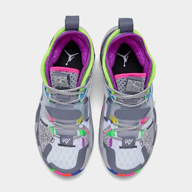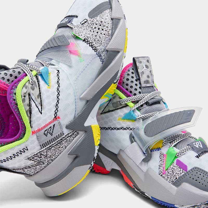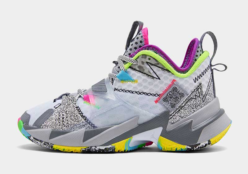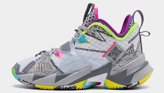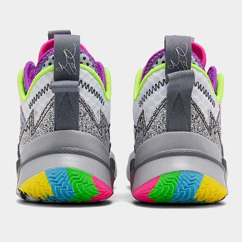 La forme est quasiment la même que celle de la Why Not Zer0.2. Jordan semble surtout avoir peaufiné les détails, avec une sangle qui prend désormais place sur le coup de pied, avec un renfort plastique qui devrait probablement renforcer le maintien. L’empeigne mélange le mesh et les empiècements en cuir.