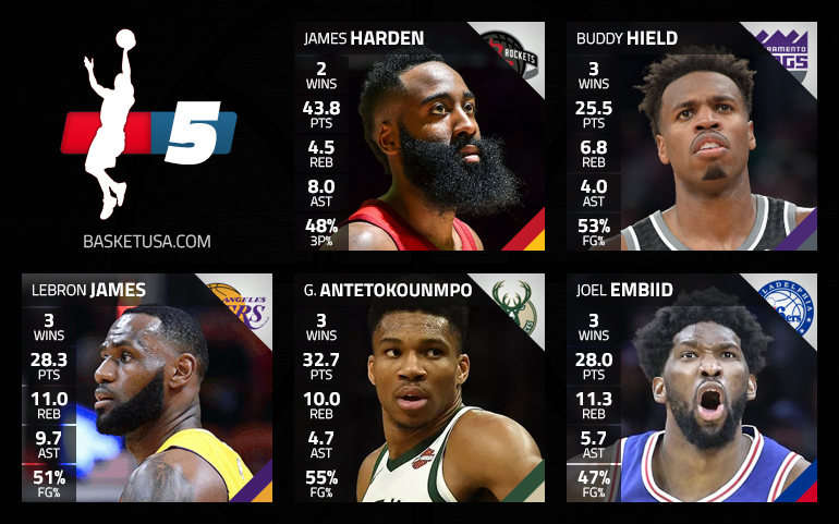 On reste avec des valeurs sûres, au sein des deux meilleures équipes de la ligue : LeBron James et Giannis Antetokounmpo. Le premier se fait plus “Magic Johnson” que jamais, semblant gérer sa saison et son physique pour accélérer au bon moment. Quant au deuxième, il renverse tout ce qu’il croise, en seulement 28.5 minutes par match. De quoi attendre avec impatience leur affrontement, jeudi, pour le gros choc de ce début de saison…