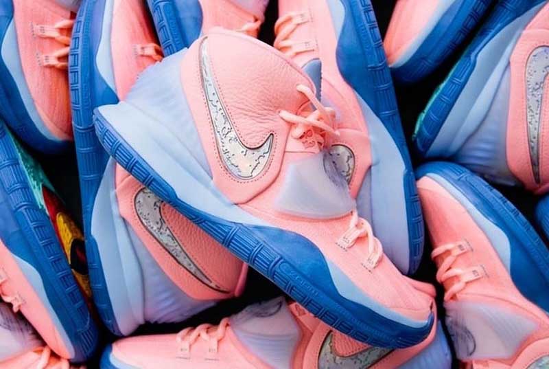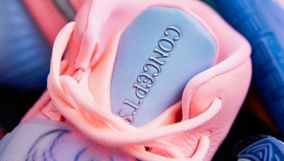 La chaussure signature de Kyrie Irving continue d’être une des plus aventureuses en terme de coloris. Le 31 décembre, elle débarquera dans les magasins avec une teinte rose et bleu. Il s’agit du résultat d’une collaboration avec l’enseigne Concepts.