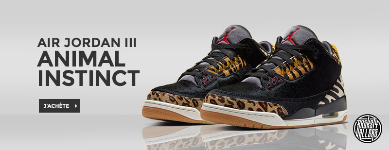 Procurez-vous maintenant sur Basket4Ballers.com la Air Jordan III “Animal Instinct” qui porte la tendance des imprimés animaux à un tout autre niveau pour vous plonger au cœur de la savane.