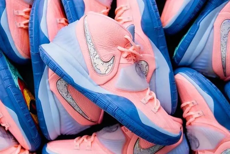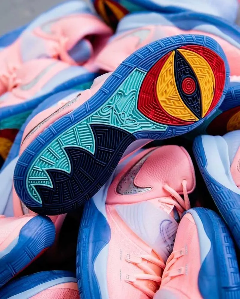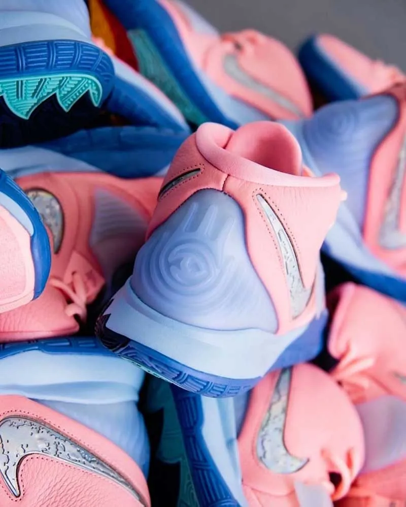La chaussure signature de Kyrie Irving continue d'être une des plus aventureuses en terme de coloris. Le 31 décembre, elle débarquera dans les magasins avec une teinte rose et bleu. Il s'agit du résultat d'une collaboration avec l'enseigne Concepts.