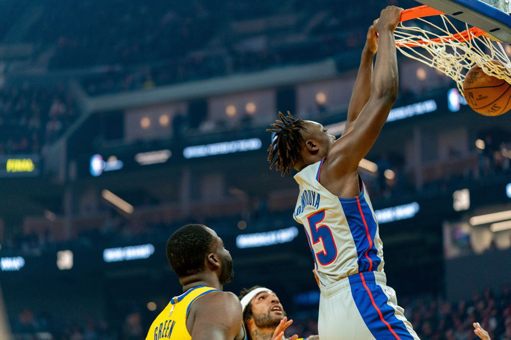 Avec un Sekou Doumbouya de nouveau titulaire après sa belle performance contre les Clippers, les Pistons prennent le meilleur départ à San Francisco. C’est le Français qui ouvre les hostilités d’un tir à 3-points dans le corner, avant d’enchaîner par une passe décisive, puis un dunk sur un backdoor (12-4).