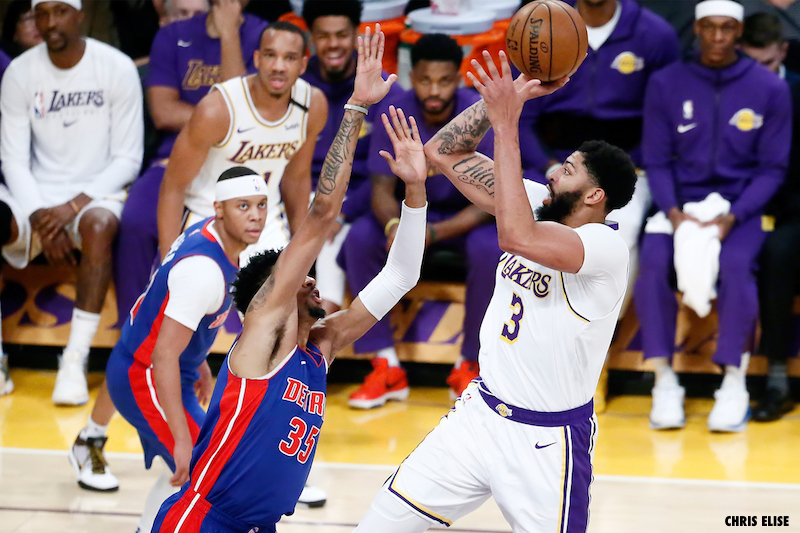 Les Lakers virent ainsi en tête à la pause (56-47) et reprennent sur le thème de leur soirée : « block party » ! Andre Drummond, qui a beaucoup souffert dessous, se fait rejeter par Anthony Davis (6 contres en première période !) puis, sur la même possession, Derrick Rose connait le même sort, infligé par JaVale McGee cette fois. Sekou Doumbouya en vient à manquer un lay-up main gauche, craignant d’être contré lui aussi, alors que son coéquipier Tony Snell s’écrase lui aussi… devant JaVale McGee !