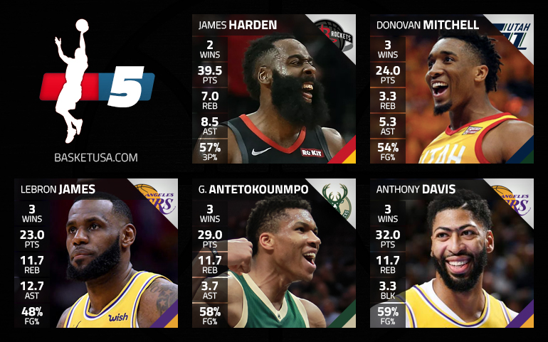 Après notre cinq majeur de la décennie, on reprend nos habitudes avec le cinq de la semaine. Comme souvent, il y a du monde à l’arrière avec les performances de Devin Booker, Russell Westbrook, Lou Williams, Shai Gilgeous-Alexander, Terry Rozier ou encore de l’étonnant Jordan McRae. Mais comme souvent, James Harden emporte finalement otre suffrage. Le barbu des Rockets a pourtant raté un match, mais ses deux autres sorties, face à Denver et Philadelphie, furent tellement impressionnantes et propres…