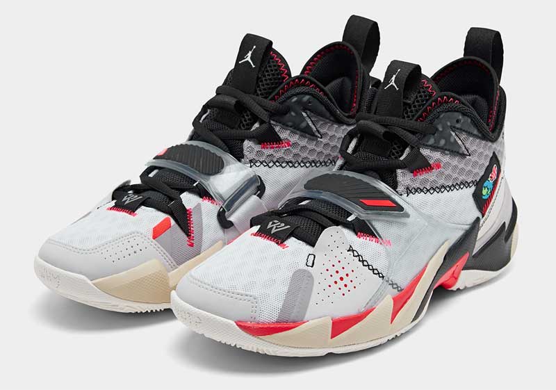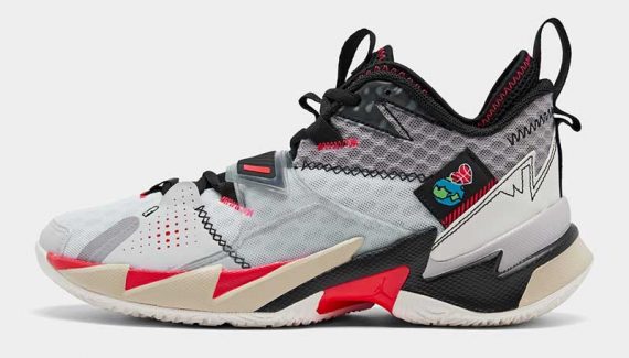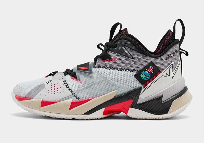 Sur la chaussure de Russell Westbrook, cela va se traduire par un coloris blanc/noir/rouge, sur lequel émerge une étiquette représentant la terre et un coeur remplit par un ballon de basket.