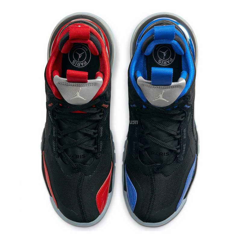 Avec son imposante bulle d’air, l’Aerospace 720 s’habille de bleu sur un pied et de rouge sur l’autre. À première vue, la base noire n’a pas vraiment de lien avec le PSG. Mais il y a une explication. Car le quatrième maillot de la saison devrait être présenté d’ici la fin du mois. Il est justement noir avec une bande tricolore au centre. Zion Williamson a d’ailleurs déjà fait une apparition avec le survêtement lié à la collection.