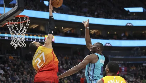 Rudy Gobert revient en jeu, et illico, il se fait remarquer en bâchant Marvin Williams près de la ligne à 3-points. Charlotte passe en zone, mais c'est pire, et Clarkson les punit par deux fois. L'écart atteint carrément les 25 points sur un nouveau dunk de Gobert juste devant Nicolas Batum (61-36), et à la pause, Utah a déjà fait le break.