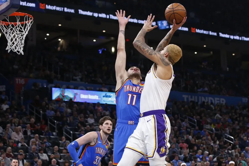 Pas de LeBron James ? Pas d'Anthony Davis ? Pas de problème ! Les Lakers ont frappé fort cette nuit en s'imposant à Oklahoma City face à une des équipes en forme du moment, et aux côtés d'un grand Rajon Rondo, c'est Kyle Kuzma qui a fait oublier les absents. Habituellement remplaçant, le jeune ailier-fort des Lakers a réalisé l'une de ses meilleures mi-temps en carrière, en atteignant la pause avec 23 points.
