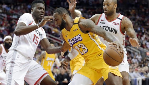 KCP intercepte et file au cercle, les Lakers sont à +13. LeBron James peut se rasseoir avec ses 31 points et 12 passes, Los Angeles s’impose à Houston malgré 69 points du duo Harden – Westbrook (124-115)… sans Anthony Davis.