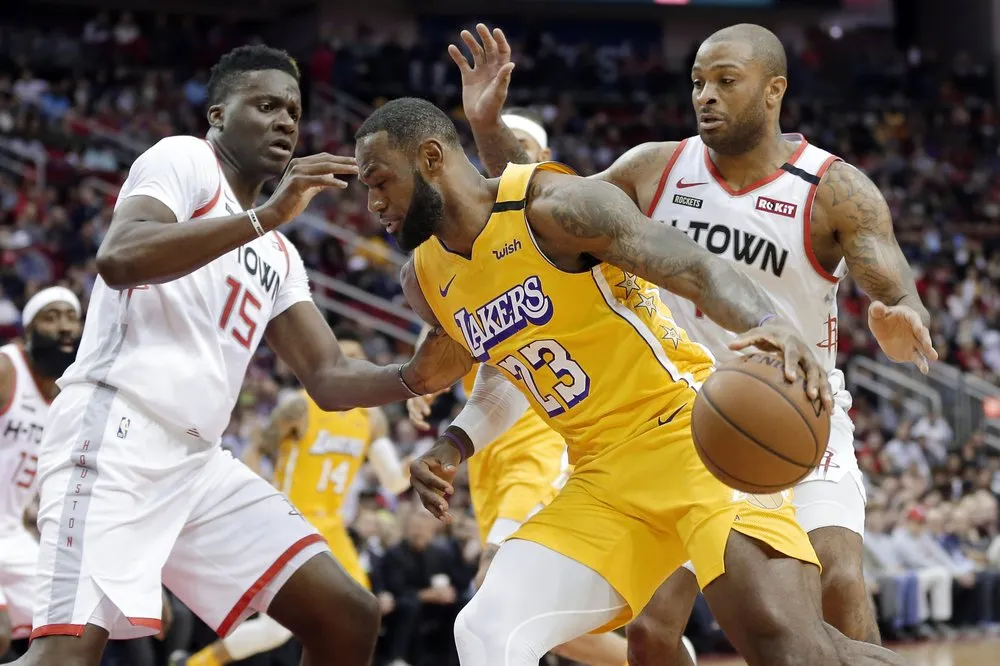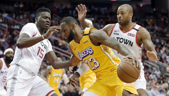 KCP intercepte et file au cercle, les Lakers sont à +13. LeBron James peut se rasseoir avec ses 31 points et 12 passes, Los Angeles s'impose à Houston malgré 69 points du duo Harden – Westbrook (124-115)… sans Anthony Davis.