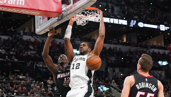 Le quatrième quart-temps commence par un énorme pétard, avec Derrick Jones Jr. qui place une claquette dunk monstrueuse sur le dos du pauvre Jakob Poeltl. Dans la foulée, le duo Goran Dragic – Kendrick Nunn réussit un 8-0 qui offre une possession d'avance (95-98) aux visiteurs, mais LaMarcus Aldridge veille au grain. L'intérieur redonne l'avantage aux siens quand Marco Belinelli inscrit un 3-points précieux (105-98) à deux minutes de la fin.