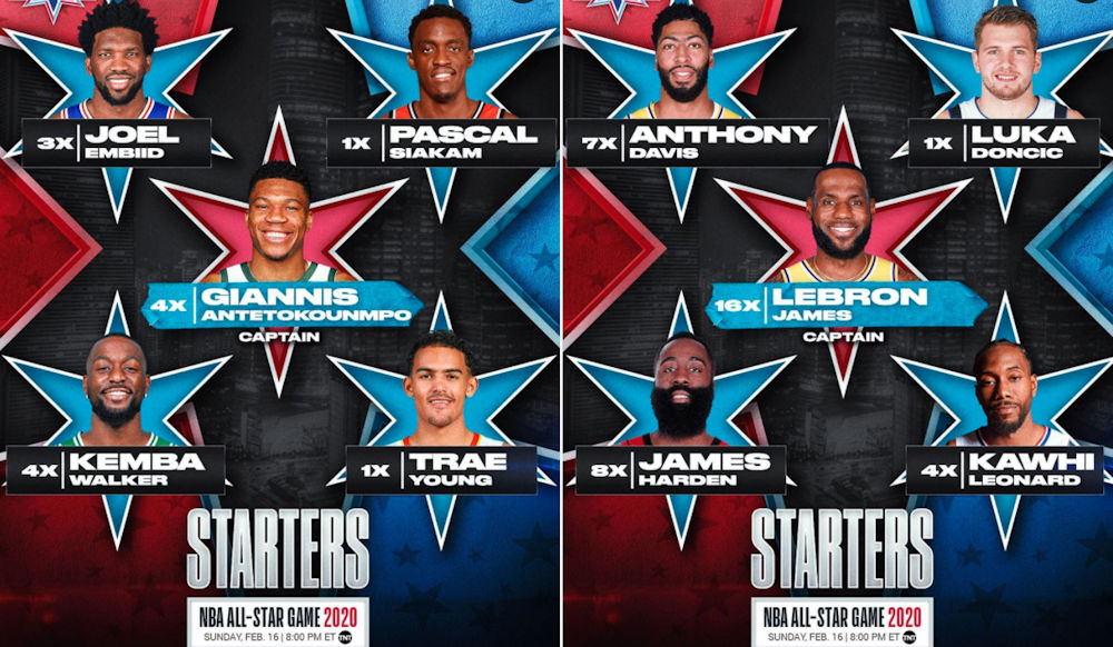 Les ailiers vedettes des deux meilleures équipes de la NBA ont dominé les votes mais jusqu’au bout, LeBron James (6 275 459 votes) aura été sous le menace de Luka Doncic, contre 6 111 735 pour le Slovène. Le vote du public compte pour 50%, suivi à égalité par les votes des médias (25%) et des joueurs (25%).