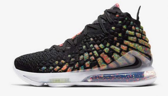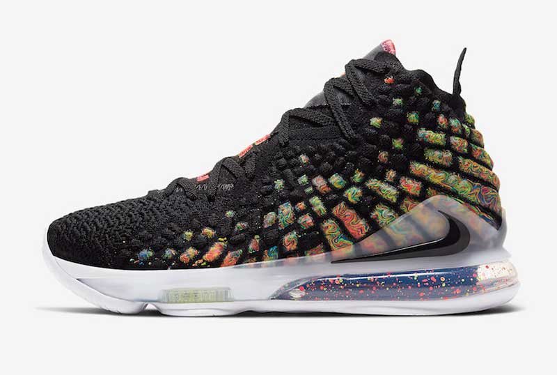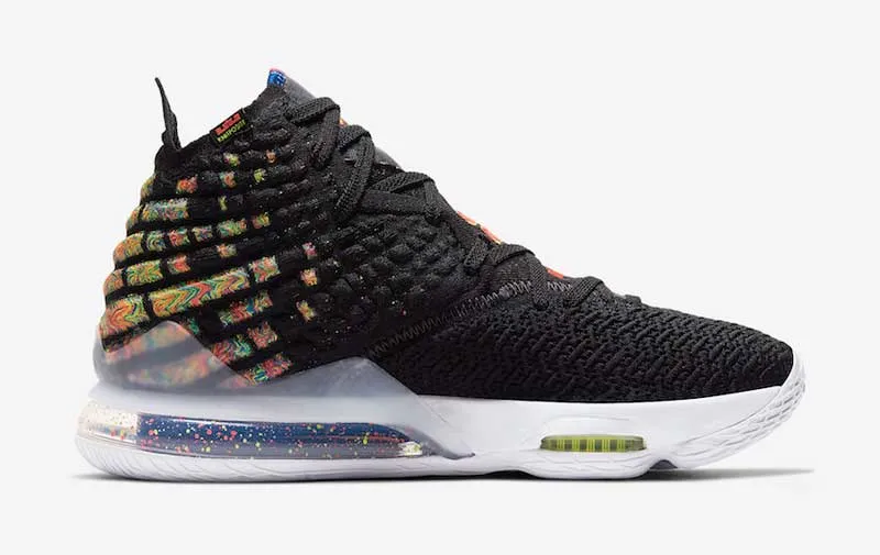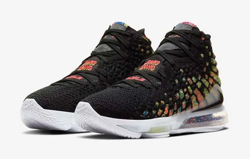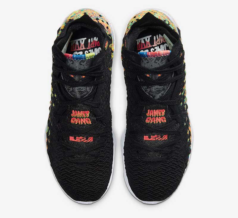 Une base noire, mais beaucoup de couleurs en complément. Le 21 février, un très beau coloris “James Gang” de la LeBron 17 sera mis en vente.