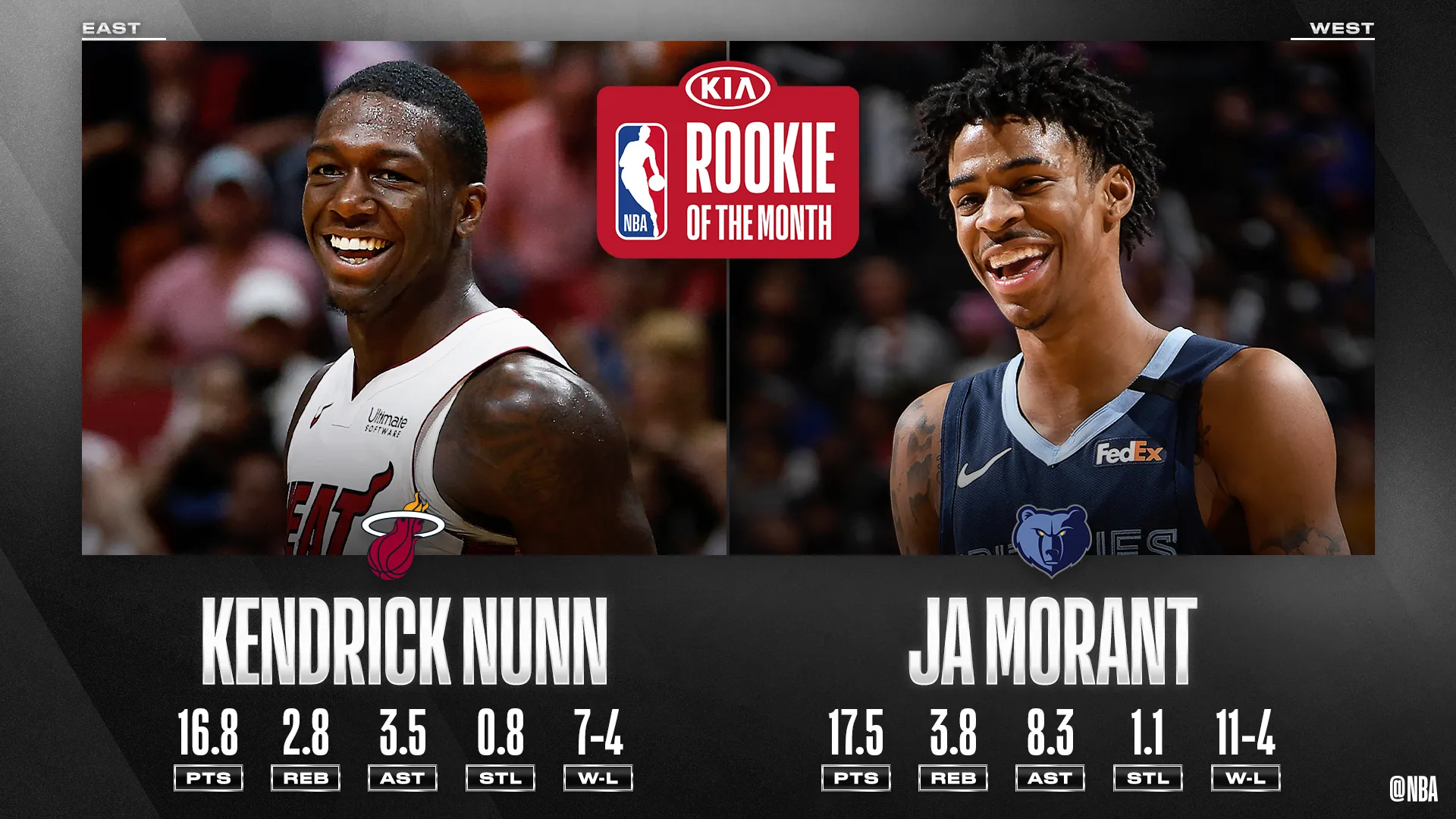 Pour la troisième fois consécutive, Ja Morant et Kendrick Nunn sont les rookies du mois !