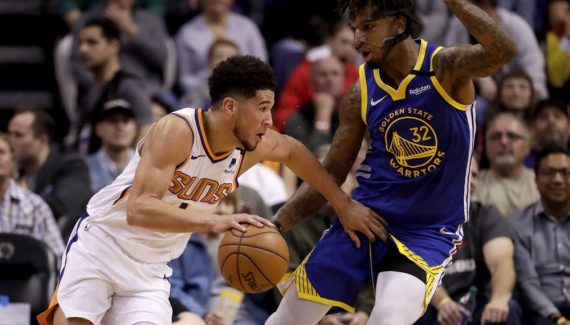 Phoenix réussit d’abord son entame en passant un 8-0 d’entrée avec Devin Booker à la baguette. En l’absence de Deandre Ayton, Cheick Diallo se distingue à trois reprises sous le cercle mais Marquese Chriss lui répond avec un alley-oop et deux dunks qui maintiennent les Warriors dans le coup. Il faut alors un 13-4 alimenté par Elie Okobo, Jevon Carter et Devin Booker pour voir les locaux prendre leurs distances (34-24).