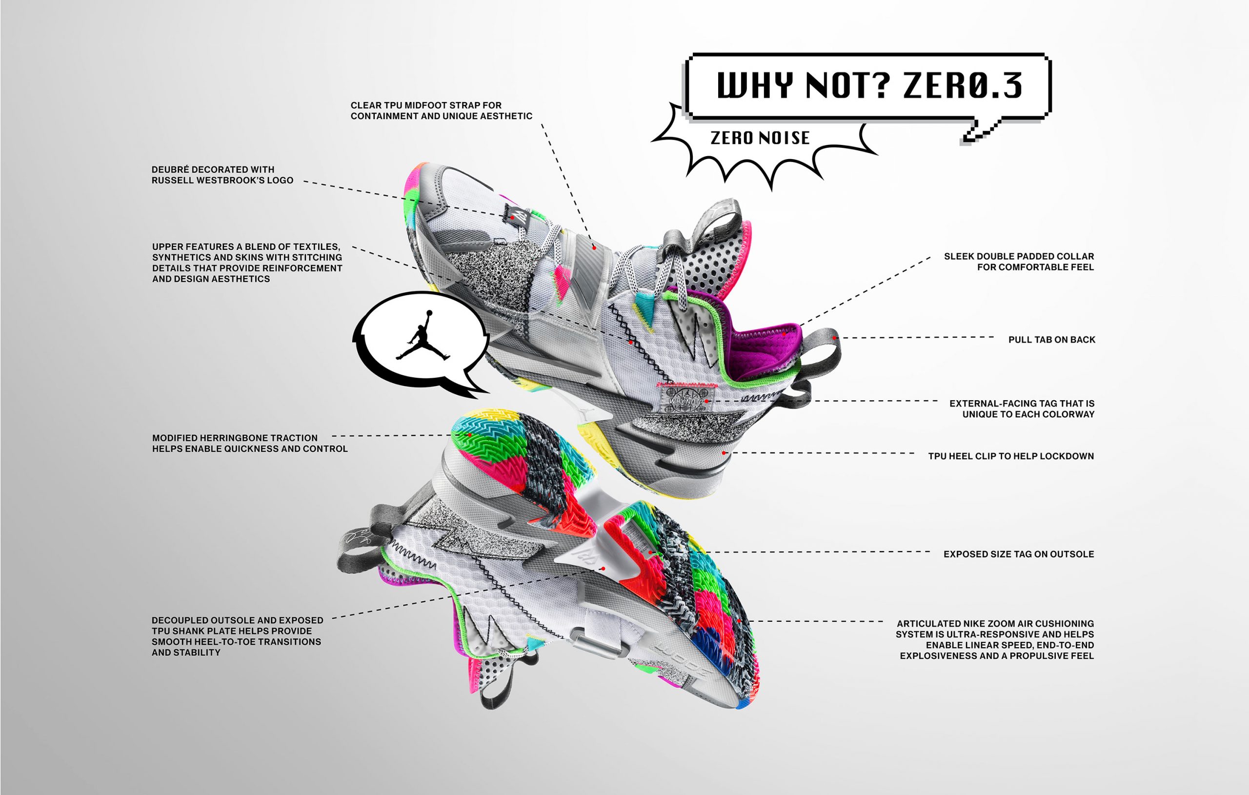 Dès le premier regard, on comprend que la Why Not? Zer0.3 est la chaussure signature de Russell Westbrook, avec ce ménage de matières et de couleurs audacieux. Mais la filiation va bien au-delà…
