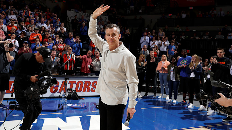 A ses côtés, ou dans les tribunes, de nombreuses anciennes vedettes de l’université comme Jason Williams, Joakim Noah, Al Horford ou encore Bradley Beal et Mo Speights.