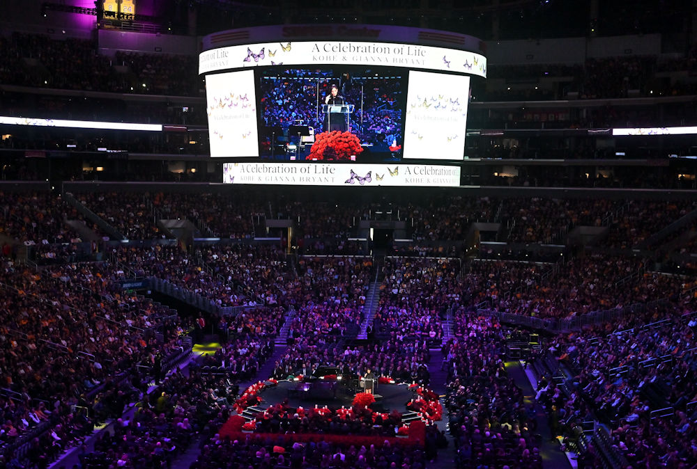 Dans la salle, joueurs, personnalités et anonymes sont en larmes. Tout le monde est inconsolable. On croise le regard humide de Gregg Popovich, Tony Parker, Phil Jackson et de Kyle Kuzma. Mais aussi de Bill Russell, Jerry West et Adam Silver. Toutes les générations sont là. Il y a 70 ans d’histoire de la NBA pour cette cérémonie. Sur la scène, au centre de dizaines de milliers de roses, Vanessa Bryant rayonne par sa force et sa dignité. “Son sourire était comme un rayon de soleil” décrit-elle à propos de sa Gigi. “Son sourire prenait tout son visage. Comme moi. Kobe disait qu’elle était comme moi. Elle avait ma passion, ma personnalité et mon ironie. À l’intérieur, elle était tendre et amoureuse. Elle avait le plus beau des rires. Il était contagieux. C’était pur et sincère.”