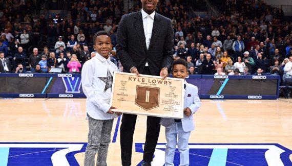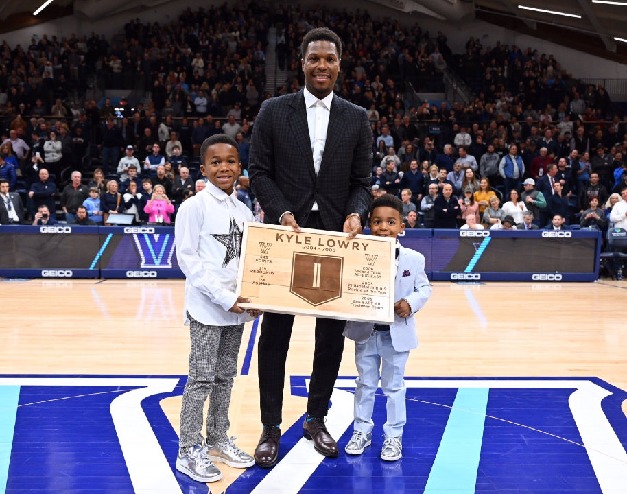 Après Draymond Green à Michigan State ou Klay Thompson à Washington State, c’était au tour cette nuit de Kyle Lowry de voir son maillot retiré. C’était à la mi-temps du match entre Villanova et St. John’s, et accompagné de ses deux fils et de son épouse, le meneur des Raptors a vu son #1 rejoindre le plafond de la salle des Wildcats.
