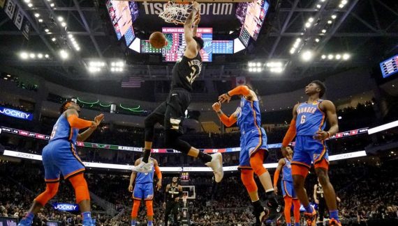 La soirée cauchemardesque d’OKC se poursuit au retour des vestiaires. Giannis Antetokounmpo et les Bucks se transforment en vrai rouleau compresseur et ils ajoutent encore 15 points à leur avantage avec un 37-22 en 3e quart. Antetokounmpo frappe de loin en première intention et il arrive à 32 points et 12 rebonds. L’écart solidement stabilisé au-dessus des 25 points et grimpant à 34, les Bucks dominent leur sujet, une fois de plus (107-69).