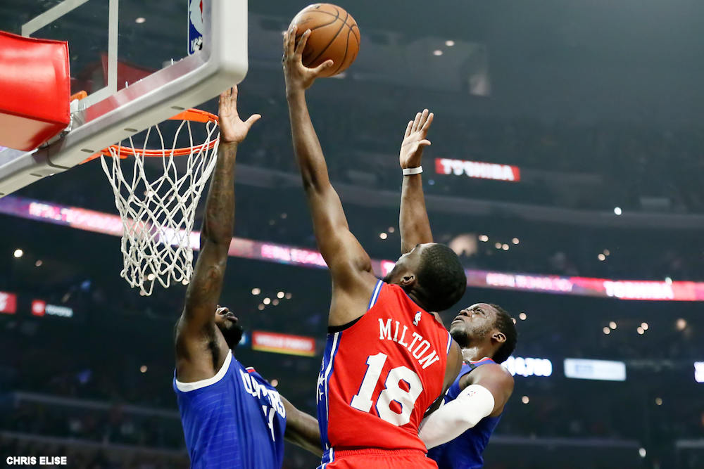Tobias Harris prend le relais, avec lui un 5/6 déjà, mais ses anciens coéquipiers Lou Williams et Montrezl Harrell sont là pour faire la différence en sortie de banc, recevant l’aide du dernier arrivé Reggie Jackson pour revenir dans le match (39-36). Les locaux passent vite devant, mais Shake Milton enchaîne deux nouvelles banderilles coup sur coup pour reprendre les commandes, et encore quatre nouveaux points pour atteindre les 20 unités à 8 minutes de la mi-temps ! Il s’arrêtera à 26 à la pause, à 10/11, dans ce match où les attaques sont à l’honneur : le score est de 72-70 après 24 minutes. Pas mal pour une équipe de Philadelphie qui fait sans ses deux meilleurs joueurs.