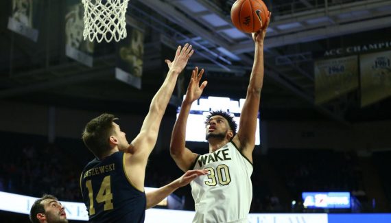 Après avoir fait tomber Duke lors de leur dernière rencontre, les Demon Deacons ont cette fois fait chuter Notre Dame avec un Olivier Sarr irrésistible dans la peinture. Il place ainsi des nouveaux records aux points et aux rebonds, respectivement à 30 points et 17 rebonds, à un scintillant 12/16 aux tirs.