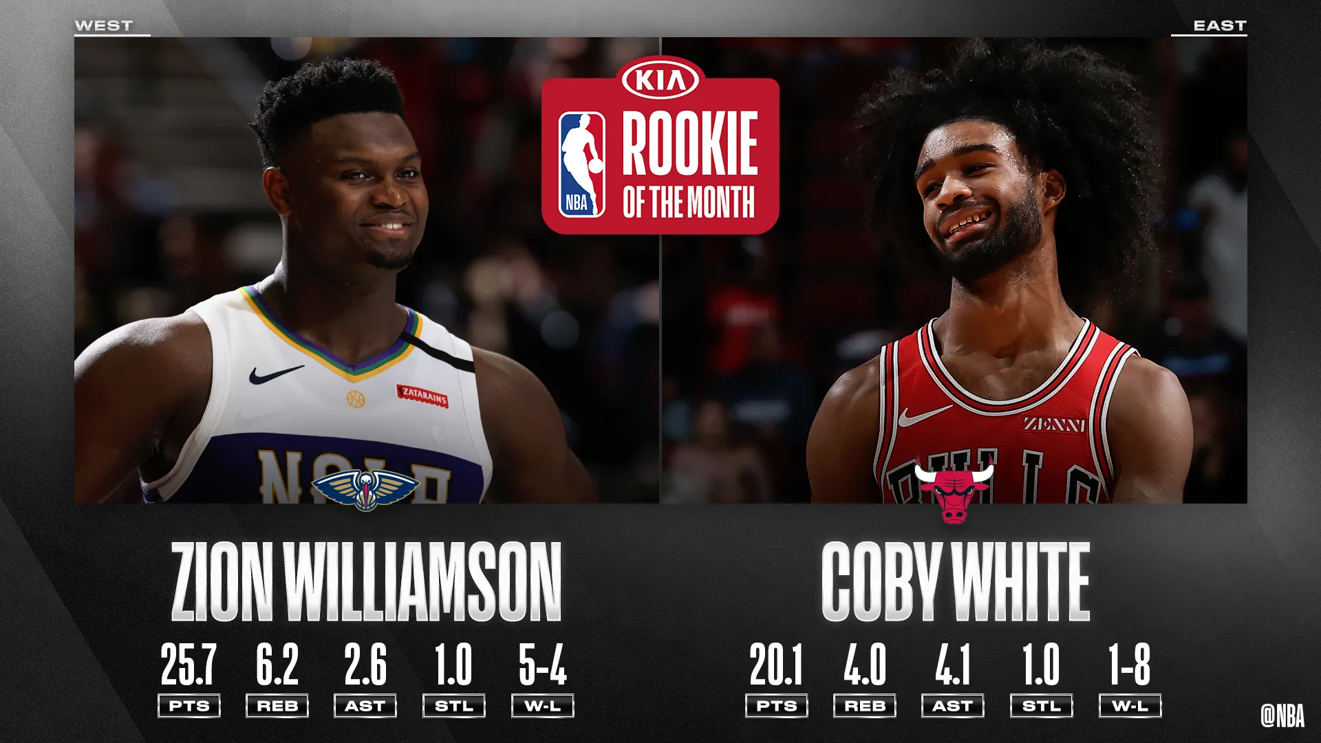 Car ce sont cette fois Zion Williamson et Coby White qui sont honorés par la ligue !