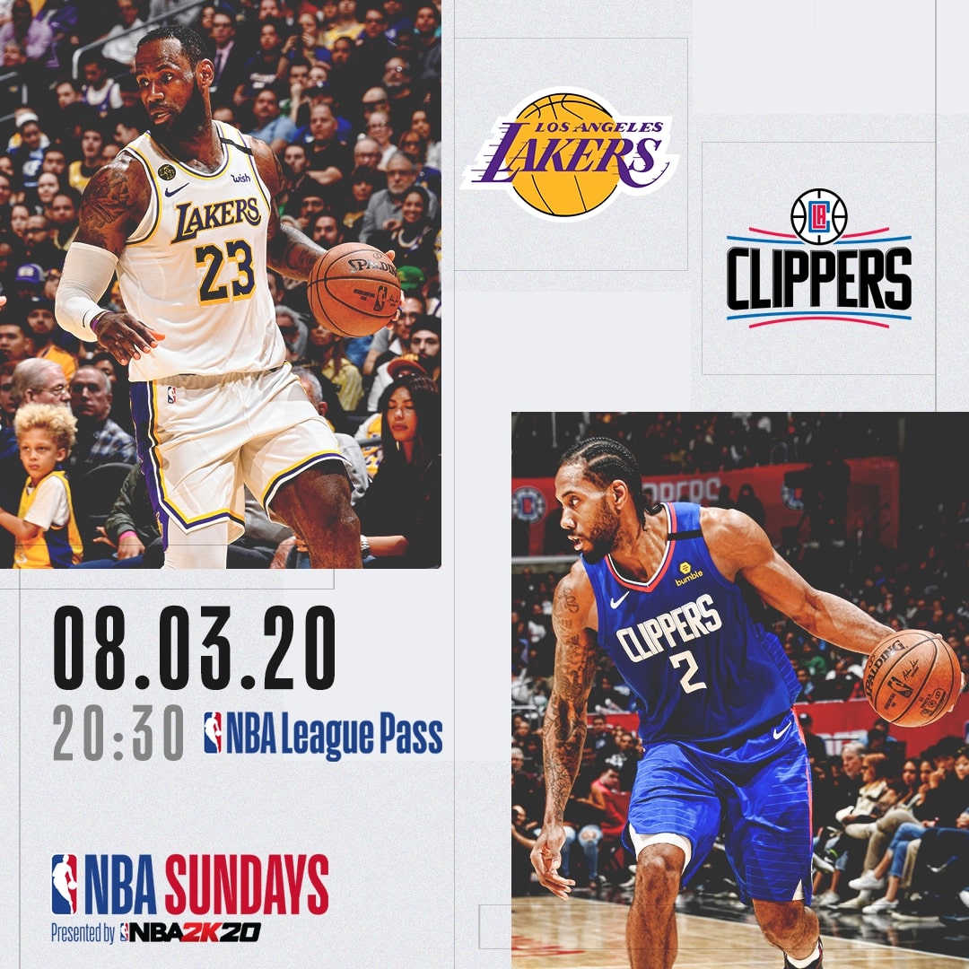 Les NBA Sundays présentés par NBA2K20 sur beIN SPORTS – un match en direct tous les dimanches. Cette semaine, les Los Angeles Lakers affronteront les Los Angeles Clippers sur beIN SPORTS ou via le NBA League Pass à partir de 20h30.