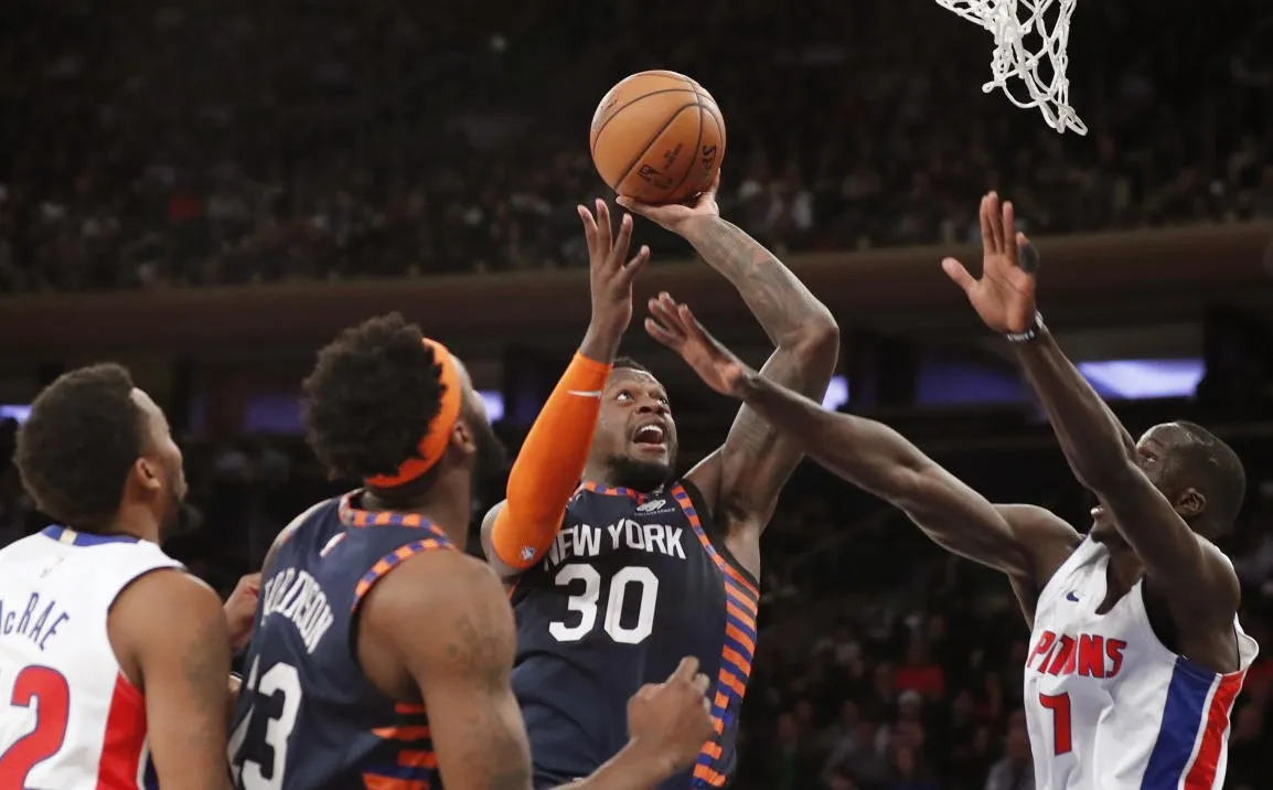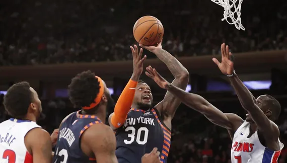 Sekou Doumbouya entre en jeu, et marque près du cercle pour sa première au Madison Square Garden. Payton tient son équipe sur ses épaules et noircit déjà la feuille de match, mais Detroit met beaucoup d'énergie en défense pour compenser leur maladresse en attaque. Mitchell Robinson claque deux alley-oop de suite, puis contre de manière féroce Thon Maker et après les douze premières minutes de jeu, les hommes de Mike Miller sont en tête (27-22).