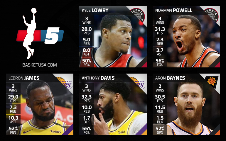 Anthony Davis ailier fort, on peut glisser Aron Baynes comme pivot, l’Australien des Suns ayant surtout réussi un match à 37 points et 16 rebonds face à Portland, à 9/14 à 3-points. Jamais un pivot n’avait réussi autant de tirs extérieurs dans un match, le précédent record (8) appartenant à Brook Lopez depuis 2018.